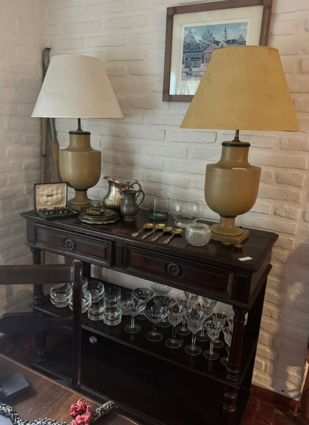 DEPARTAMENTO CON ESTILO Y DISEÑO. Billinghurst 2553.Juego comedor inglés y vajillero decapado, lámparas Mid Century, de mesa y colgantes, italianas, suizas, Churba en Murano y Acrílico, Opalina c/base cromada, cerámica, L'interdit, antig querubín policromado, varios juegos de copas franceses, mexicanos, hielera americana Penguin cromada, espejos marcos alpaca biselados, lámpara, paragüero, adornos orientales, vajilla italiana, alemana, americana, sillón, objetos de decoración casa domus, alfombra, L'interdit, Vivai Punta del Este, cuadro Gaugin copia certificada, tapíz Isabel Eszurra, cuadro esmaltado colección Mereces Chocron N.Y., cubiertos p/12 Christinox, consola acrílico, cómoda y mesas de luz provenzal decapados, cuadros, láminas suizas y U.S.A., mesa comedor diario Pfizer Suiza rebatible juego dormitorio en cerejeira, somier 2 x 2, perchero de pie, cama 1 plaza articulada, heladera Frigidere, cocina Whirlpool en acero 56 cm, radiadores, lavavajillas Drean, art. de cocina y más!!!