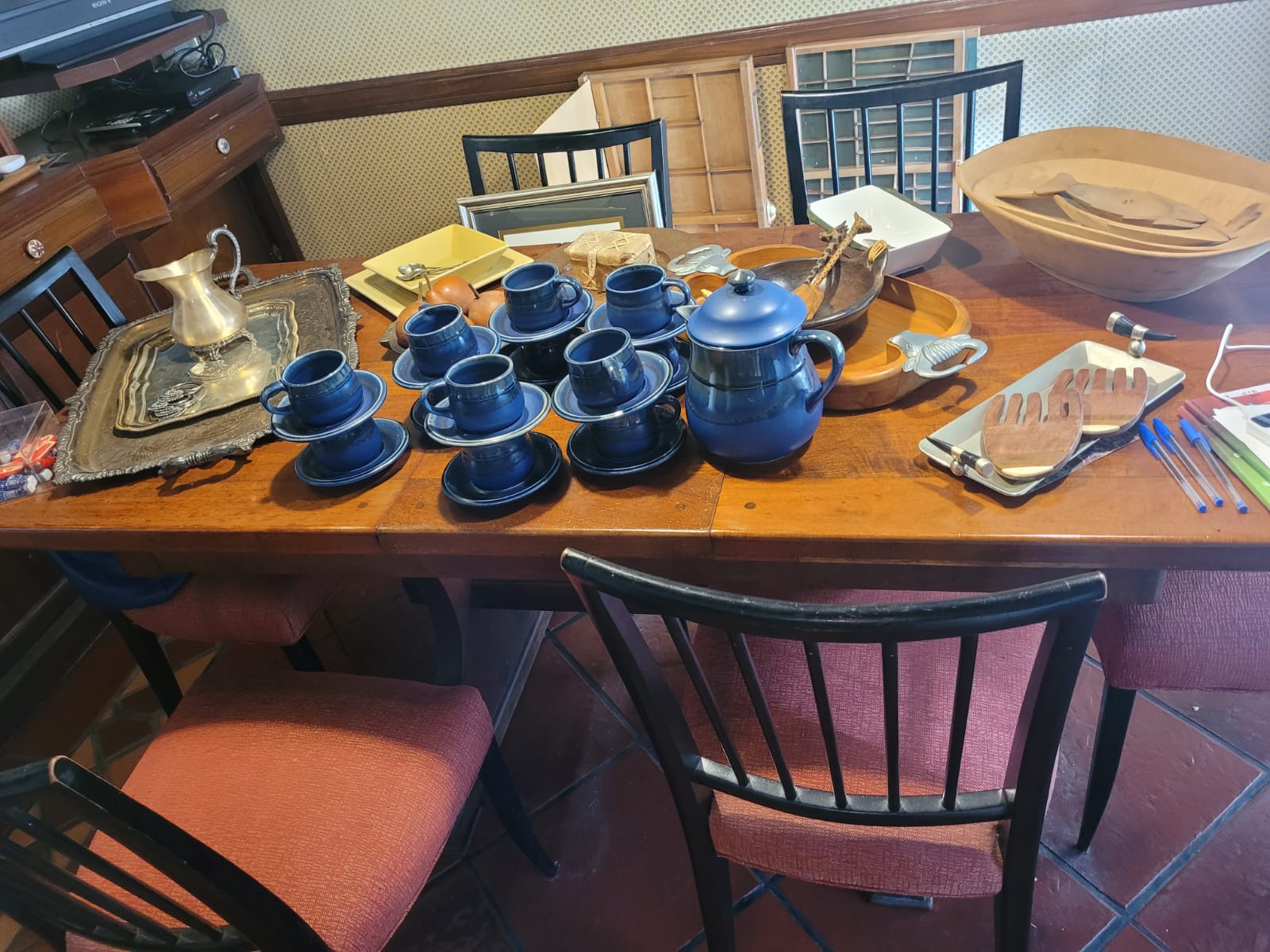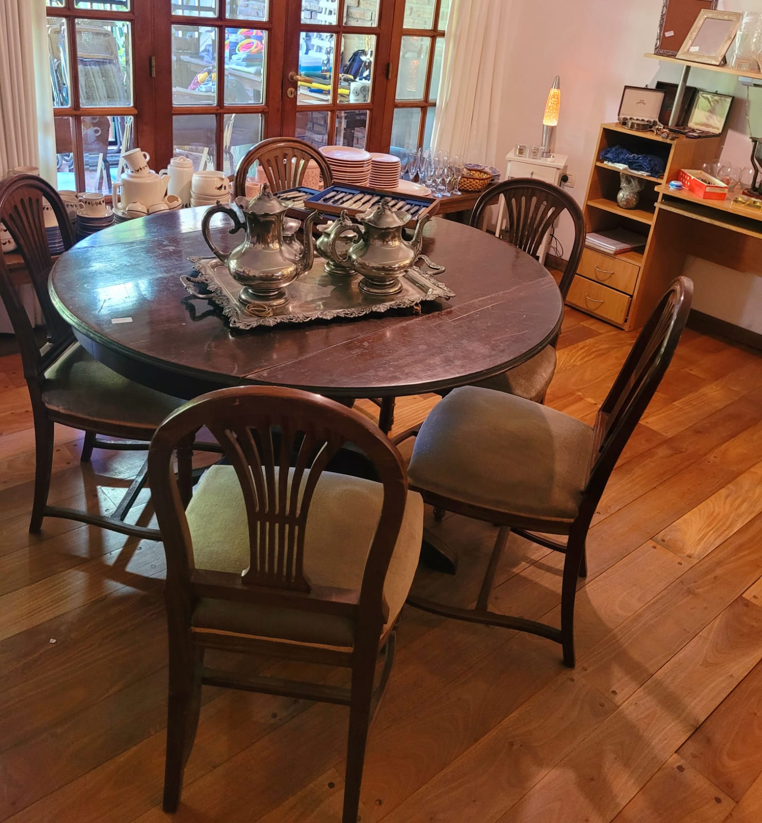 CONDE 1785 BELGRANO R CABA de 10 a 16:30 h. Juego de comedor, vajillero y vitrinas Bidermeier, sillones dos cuerpos y uno, mesas ratonas y consola en hierro, cuchillería, bayonetas y machete Ejército Argentino, colección navajas pesca, planero en madera y hierro, reloj pared alemán, espejo marco alpaca, escritorio, mesa de luz y silla en roble, aguayos, figuras tailandesas, cuadros, serigrafías mexicanas, ant. exhibidor barra de bar, espejos marco ant., puertas, mesas de algarrobo y madera comedor diario, ant. banco de plaza, art. metal plateado, lámpara estilo Tiffany, juego de té nacional, ropa hombre y mujer primeras marcas, vestidos Kenzo, libros, juegos de mesas, art. cocina, frezzer vertical, heladera, art de jardin y más!! ¡Los esperamos! Traer embalaje cuidemos la ecología. Contacto venta Susana 11 53104649.
