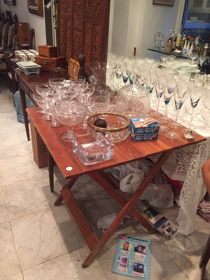 CÓRDOBA 2740. Muebles de estilo, cristalero, vitrina, juego de comedor inglés, sillón victoriano, vajillero, mesa ratona vítrea y hierro, bronces, mesitas costado de sofá, silla dormitorio, cubiertos, art de luz, escritorios inglés y otros, mesa mayordomo, adornos, candelabros Sheffield, butacón, fina cristalería, lámpara doble plato, varias mesas de luz, lámparas de mesa, varas vajillas de té y de mesa importadas, shops musicales, camas 1 plaza estilo y otra, libros, banquitos de cocina, tv y soporte tv, fina mantelería, ropa blanca, ropa de mujer actual, art metal plateado, cantidad de art de cocina, y mucho más!!!