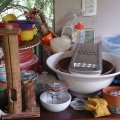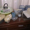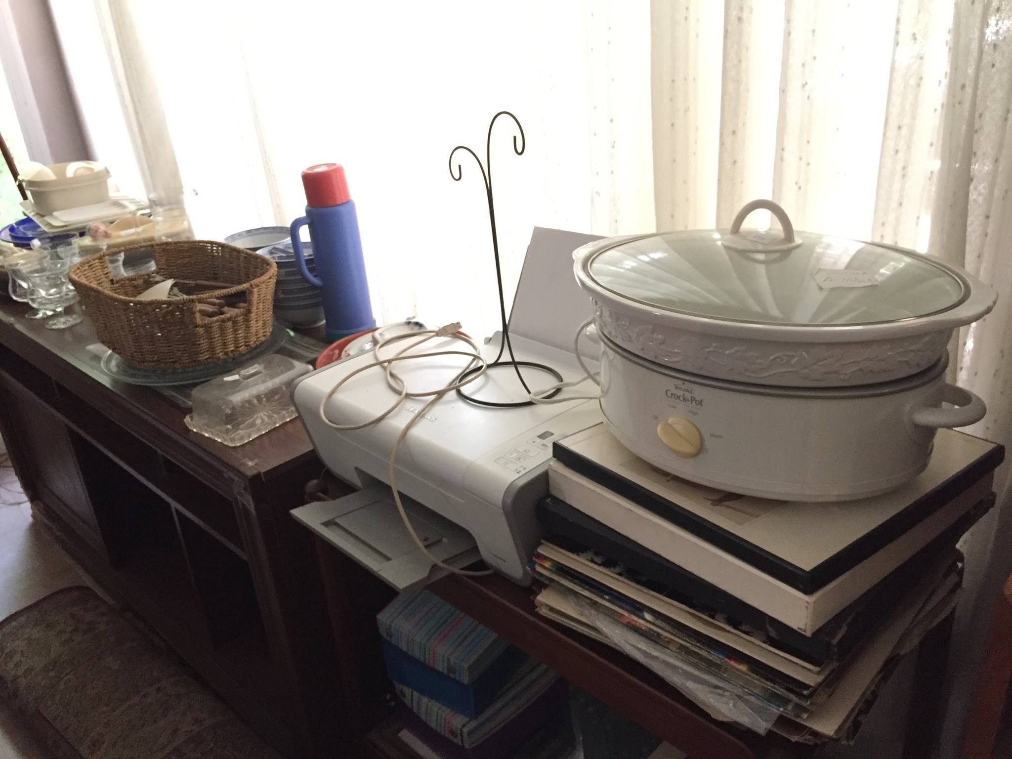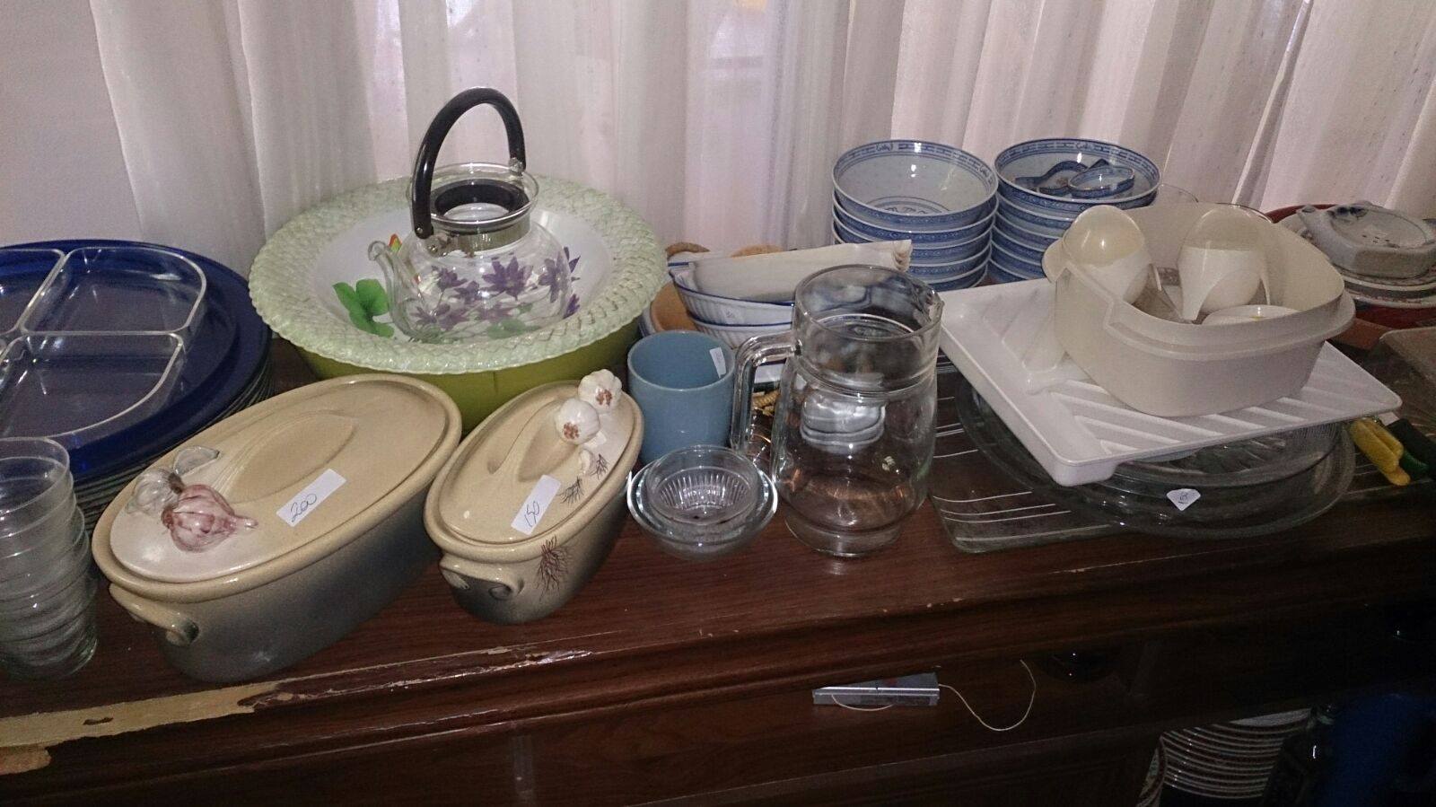 parrilla, candelabros, pisa papeles, mesas ratonas, mesitas costado de sillones, gran vitrina de roble, platos ingleses, jgo de té de metal con bandeja, varios juegos de té, bebidas, cantidad de cd y discos, guitarra, cantidad de cajas Tuppers grandes, 3 fondeaux, juguetes, colección de autitos, racletera, fuente eléctrica, ventiladores de techo, faroles de pared y colgantes, jgo de ratan de jardin, herramientas, casita plástico, varias conservadoras, 2 gacebos grandes e impecables,
