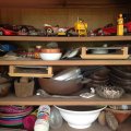 Bº Sausalito. Lote 130: Cantidad de adornos, aparadores, cómodas, mesas de luz, cama de 2 plazas de roble, jgos de sillones y comedor, lámparas, biblioteca, cantidad de libros, metal plateado, 2 heladeras Whirpool, microondas, varios juegos de cubiertos, pinturas y láminas, varias mesitas mayordomo, cantidad de vajilla importada, fina cristaleria, jofaina, jgos de jardin de hierro, reposeras, estanterías, art de cocina, lavarropas 8 y 10kg, secarropas, mucha y fina mantelería, pequeños electrodomésticos, art de jardín, alfombras importadas, art de peltre, sifones antiguos, art de